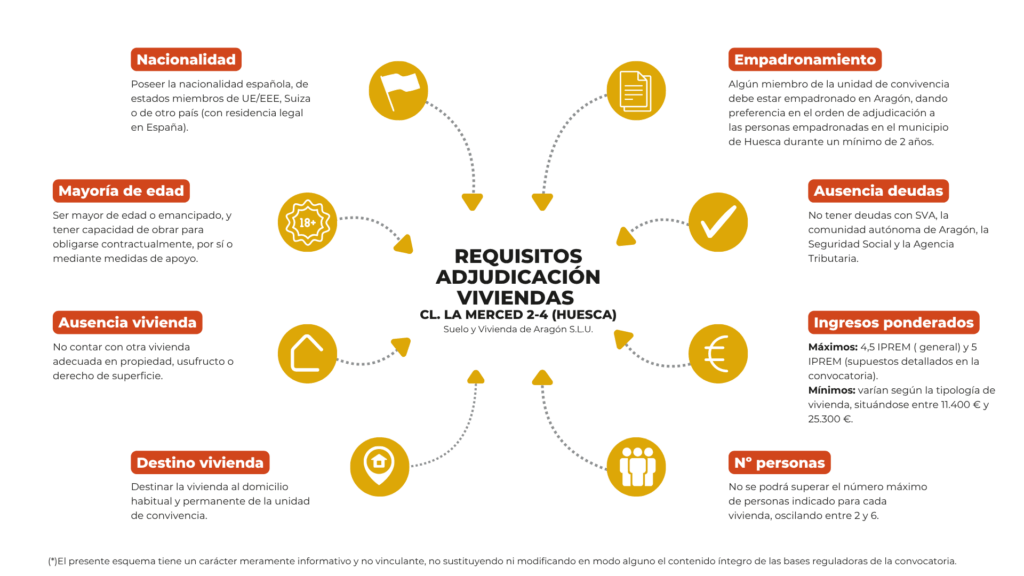 Suelo y Vivienda de Aragón S.L.U. convoca a las personas físicas interesadas a la presentación de solicitudes para la adjudicación de 27 viviendas, con plaza de garaje y trastero incluidos, en régimen de alquiler ubicadas en la calle La Merced números 2 y 4, en el municipio de Huesca.